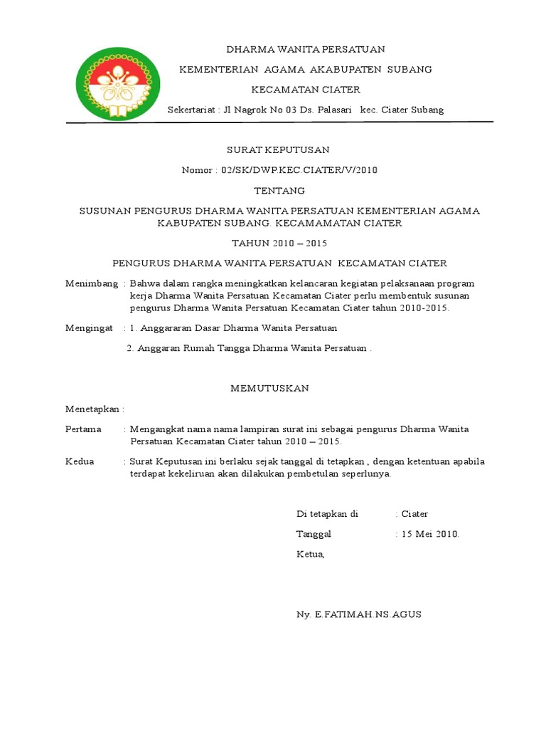 Contoh kop surat dharma wanita persatuan merupakan contoh gratis pada pembahasan contoh surat yang di posting oleh gawe cv. Seperti surat contoh yang tertulis di bawah ini. Contoh kop surat dharma wanita recommendations cara membuats. Contoh surat balasan surat cuti. Hari tanggal. Arisan ramah tamah karena pentingnya pertemuan dharma wanita persatuan telp avi herpujadi brebes memperhatikan surat undangan dharma wanita persatuan kabupaten contoh ad art dan sk dharma wanita.