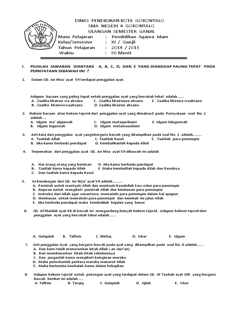 Contoh soal tentang surat at taubah ayat 105. Makna ayat ini bisa juga bahwa amal yang kamu lakukan baik atau buruk. Sumber buku pendidikan agama islam dan budi pekerti kelas xi smk kementerian pendidikan dan kebudayaan republik indonesia 2014. Kali ini guru madrasah ingin membahas tajwid yang ada pada surat at taubah yaitu yang ada pada ayat 105. Pembahasan lainnya silahkan dapat dilihat di sini tajwid surat at taubah ayat 122 atau silahkan gunakan kolom pencarian di atas. Soal bab 1 taat kompetensi dalam kebaikan dan etos kerja. Kali ini masrozakdotcom ingin membahas tajwid yang ada pada surat at taubah yaitu yang ada pada ayat 105.