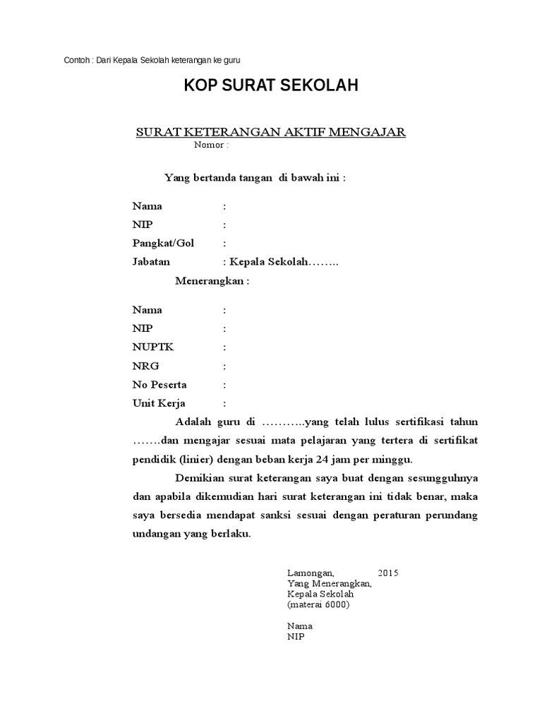 Contoh surat keterangan aktif mengajar surat keterangan aktif mengajar adalah sebuah surat yang dikeluarkan oleh sekolah dan ditandatangani oleh kepala sekolah yang menerangkan seseorang guru tersebut masih aktif mengajar di sekolah tersebut. Contoh surat aktif mengajar ini kami buat buat anda yang ingin sekali aktif untuk mengajar kembali yang mana anda suda cuti lamah alasannya ada masalah. Contoh surat keterangan aktif mengajar yang baik dan benar. Yang bertanda tangan di bawah ini. Surat keterangan aktif mengajar. Surat keterangan aktif mengajar merupakan surat resmi yang dikeluarkan oleh suatu instansilembaga pendidikan seperti sekolah untuk menerangkan bahwa seorang guru secara resmi menjadi salah satu pengajar dan aktif melakukan kegiatan pengajaran di sekolah tersebut.