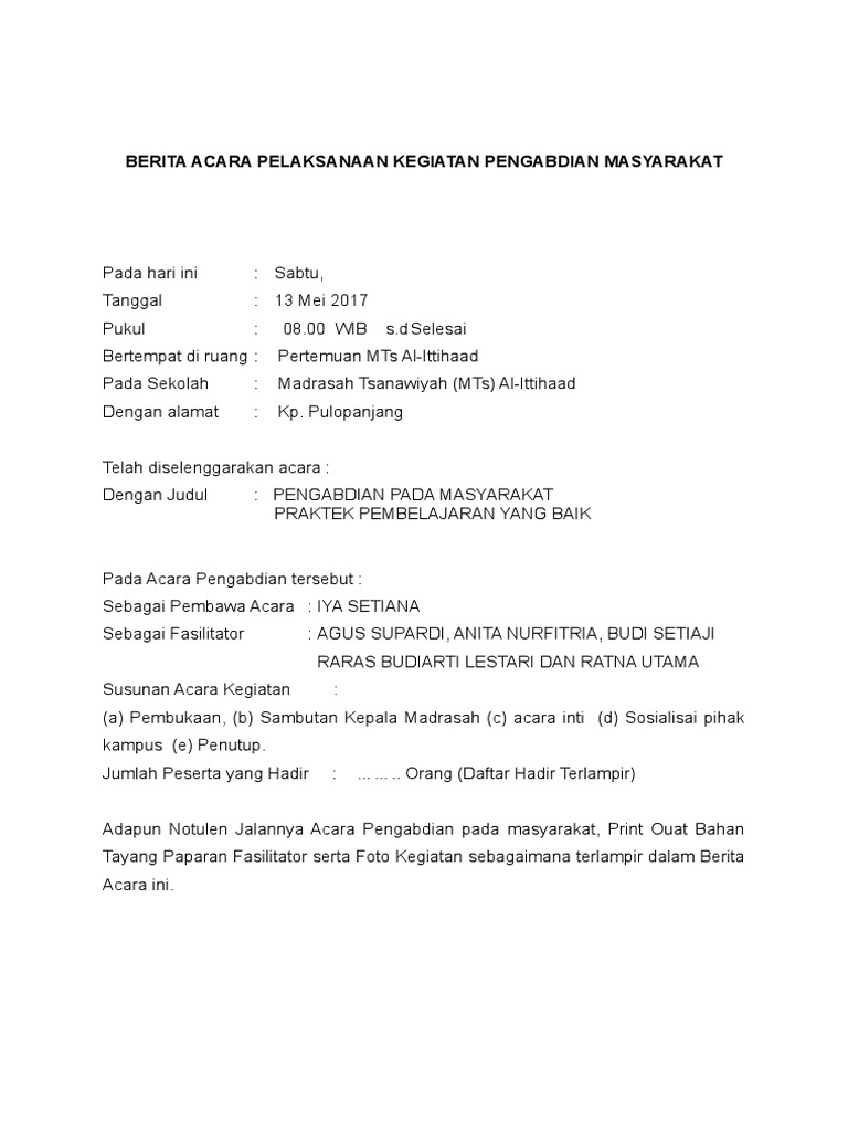Contoh surat berita acara kegiatan. Penyertaan surat ini dalam sebuah kegiatan dimaksudkan untuk mengetahui runtutan kejadian yang berlangsung. Adapun contoh dari berita acara kegiatan sendiri adalah sebagai berikut. Beberapa instansi atau perusahaan menggunakan surat berita acara sebagai dokumen. Dalam penyelenggaraan acara berita acara kegiatan menjadi salah satu dokumen yang sangat penting keberadaanya. Adapun pengertian berita acara adalah suatu naskah dinas atau surat yang mana pada isinya tersebut mengandung pernyataan persetujuan dan peresmian mengenai kegiatan tertentu rapat kejadian peristiwa kerusakan serta serah terima barang. Contoh berita acara kegiatan.