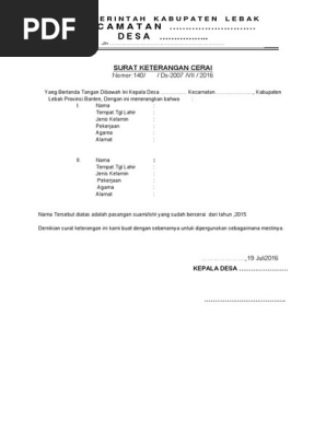 Contoh surat cerai dari desa. Yha apabila selalu terjadi hal hal yang tidak baik dalam pernikahan solusi terakhir adalah perceraian. Contoh surat pernyataan cerai pada umumnya tidak ada orang yang menginginkan perceraian namun pada kenyatannya masih sering terjadi kasus perceraian dimana mana. Contoh surat keterangan nikah siri dari desa have an image from the othercontoh surat keterangan nikah siri dari desa it also will feature a picture of a sort that may be observed in the gallery of contoh surat keterangan nikah siri dari desa. Tujuannya tentu saja untuk proses perceraian. Surat permohonan izin cerai kumpulan contoh surat pernyataan cerai terbaru dan terlengkap. Identitas pihak pertama yang meminta cerai poin selanjutnya adalah menyebutkan identitas diri secara jelas pihak pertama atau pihak yang meminta perceraian.