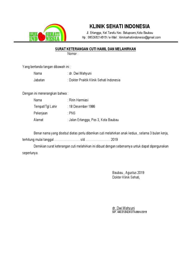 Contoh surat cuti hamil dan melahirkan. Untuk pns sendiri akan diberikan jatah cuti 1 bulan sebelum melahirkan dan 2 bulan setelah melahirkan. Kop surat dalam hal ini tergantung dari instansi kesehatan yang memberikan surat keterangan pengajuan cuti. Hal ini akan membuat mereka membutuhkan waktu untuk berhenti bekerja atau cuti sementara. Seorang pekerja perempuan berhak atas cuti hamilmelahirkan dan manfaat bersalin. Dan kita semua sudah tahu kalau proses melahirkan bukanlah proses yang mudah membutuhkan banyak tenaga pengorbanan persiapan hingga waktu pemulihan yang lama. Contoh surat izin cuti melahirkan yang baik dan benar cuti mungkin bagi sebagian karyawan adalah dambaan untuk merebahkan penat selama bekerja.