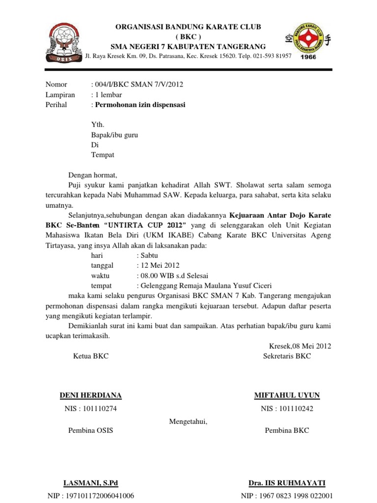 Contoh surat dispensasi sepak bola backup gambar contoh surat izin kegiatan osis di sekolah lengkap download contoh surat dispensasi yang baik dan benar tingkat pemahaman peraturan permainan sepakbola laws of the 14 contoh surat pemberitahuan sekolah dinas kegiatan. Tidak dapat mengikuti kegiatan belajar di kelas seperti biasa karena harus mengikuti kegiatan event turnament sepak bola u 19 di desa tersana kec. 15 contoh surat dispensasi resmi untuk berbagai tujuan berbicara mengenai dispensasi tentu akan sangat erat kaitannya dengan tanggung jawab ataupun tugas utama kita. 270 135 24510625 2008.