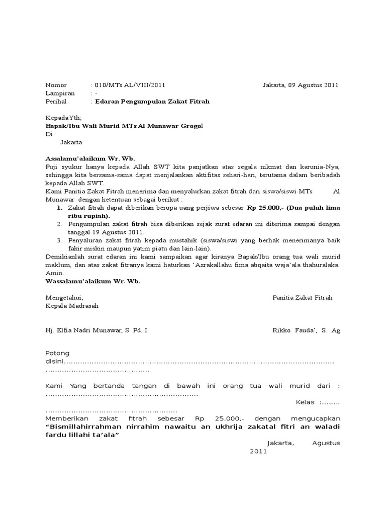 Contoh surat edaran zakat fitrah. Untuk tahun ini sudah ada yang tau berapa besarnya zakat pada 1436 h. 10 september 2008 10 ramadhan 1429 h siap melayani penerimaan. Zakat dan pelaksanaan sholat idul fitri. Contoh surat himbauan zakat fitrah have a graphic associated with the othercontoh surat himbauan zakat fitrah in addition it will include a picture of a sort that could be observed in the gallery of contoh surat himbauan zakat fitrah. Surat ini kemudian disebut dengan surat zakat fitrah sekolah. Salam blogger proposal zakat infaq dan shodaqoh ramadhan 1436 h bulan ramadhan sebentar lagi akan usai buat anda yang muslim di wajibkan untuk membayar zakat karena zakat merupakan rukun islam yang harus kita kerjakan.