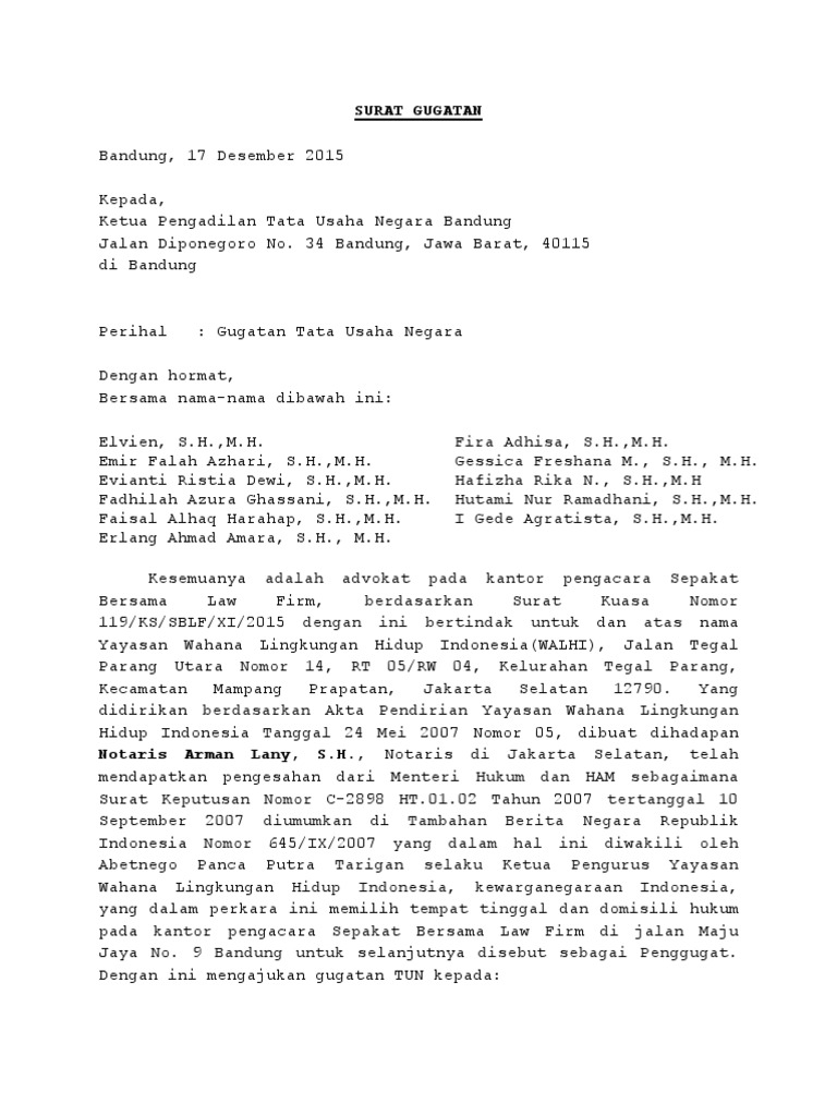 Untuk dapat mendownload contoh surat gugatan ptun dalam format doc silahkan klik link berikut ini. Academiaedu is a platform for academics to share research papers. Download contoh surat gugatan ptun doc. Dengan hormat yang bertanda tangan di bawah ini.