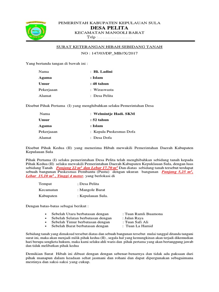 Contoh surat hibah tanah kepada pemerintah. Namun perlu diketahui kalau penggunaan surat memang tidak bisa ditinggalkan karena ada banyak hal dan urusan yang masih membutuhkan surat. Biasanya surat ini diperlukan bilamana seseorang akan memberikan tanah yang ia miliki kepada orang lain secara cuma cuma. Terutama jika anda sudah memiliki format surat hibah tanah maka pastinya akan jauh lebih mudah. Contoh surat hibah versi tahun 2020 tiba saatnya untuk melihat bagaimana contoh penulisan surat hibah yang baik dan benar. Ada banyak jenis surat hibah yang sering digunakan seperti contoh surat hibah tanah untuk jalan surat hibah tanah untuk masjid kepada anak ataupun kepada pemerintah. Contoh surat hibah mendengar kata hibah tentu bukan sesuatu hal yang baru lagi untuk kita semua.