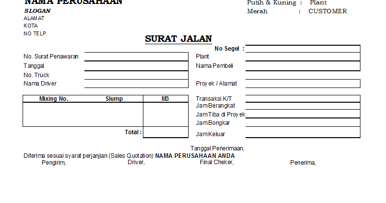 Contoh surat jalan perusahaan. Terakhir surat jalan rangkap ketiga dan keempat berguna sebagai arsip atau catatan dari perusahaan yang membuat dokumen tersebut. Jadi keberadaan dari surat jalan tidak boleh disepelekan agar pengiriman barang dapat berjalan dengan baik dan perusahaan memiliki arsip kegiatan transaksi yang telah dilakukan. Surat jalan itu sendiri dapat digunakan sebagai bukti transaksi. Seperti contoh surat jalan pengiriman barang surat pengantar barang ini yang digunakan sebagai bukti pengiriman suatu barang. Contoh surat jalan selamat datang di portal hidupsimpel yak kali ini kita akan membahas tentang contoh surat jalan dari contoh surat jalan pengiriman barang kendaraan barang keluar tugas alat berat dinas desa perusahaan dan kendaraan kepolisian. Tujuan contoh surat jalan ini biasanya digunakan untuk perusahaan dalam kebutuhan pengiriman atau tanda bukti resmi seseorang atau barang untuk melakukan perjalanan.