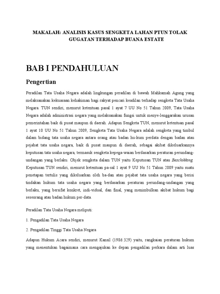 Berdasarkan pasal 1 angka 3 undang undang no. 9 tahun 2004 merumuskan bahwasanya keputusan tata usaha negara ktun adalah suatu penetapan tertulis yang dikeluarkan oleh badan atau pejabat tata usaha negara yang berisi tindakan hukum tata usaha negara berdasarkan peraturan perundang undangan yang berlaku yang bersifat konkrit individual dan final yang. Pengadilan tata usaha negara menolak gugatan hak guna bangunan pulau d reklamasi.
