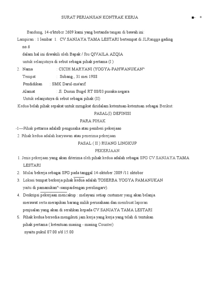 Indonesia Contoh Perjanjian Kerja Perjanjian Kerja Pekerja