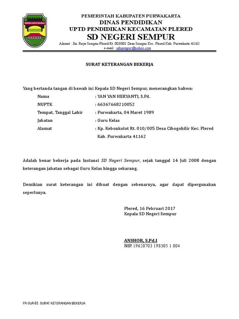 4 Contoh Surat Keterangan Kerja Lengkap File Doc