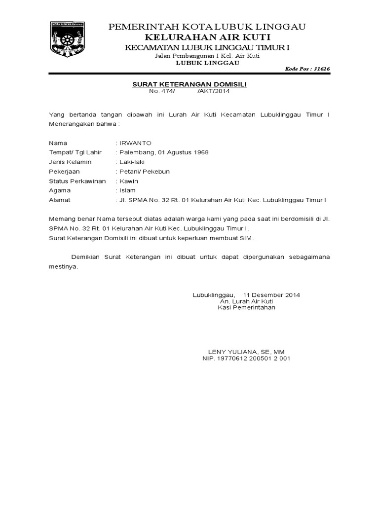 Contoh surat keterangan domisili kelurahan. Contoh surat keterangan domisili tempat tinggal dari rt bagi warga pendatang yang belum memiliki ktp setempat sebaiknya memiliki surat keterangan domisili sementara dari rt. Surat ini juga bisa dipakai oleh seseorang yang ingin melamar pekerjaan dan juga mengikuti berbagai kegiatan dan program dari pemerintah dan swasta. Demikian surat keterangan pindah domisili ini kami buat dengan sebenar benarnya dan untuk dipergunakan. Contoh surat keterangan domisili perusahaan dari kelurahan ini dibutuhkan oleh sebuah perusahaan untuk melengkapi syarat pembuatan rekening bank atas nama perusahaan. Sugeng siang wassalamualaikum wa rahmatullahi wa barakatuh. Apabila kita akan berpindah masih dalam satu kelurahan maka surat pindah dikeluarkan serta ditanda tangani oleh aparat.
