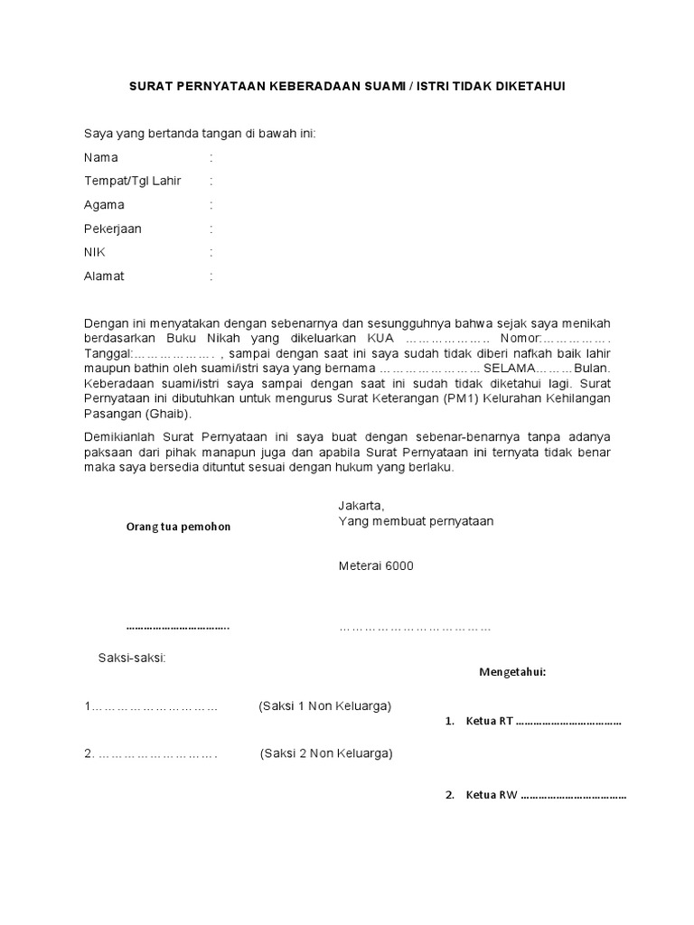 Istilah suami ghaib itu muncul terkait gugatan cerai ghaib dimana istri yang mengajukan gugatan cerai namun suami tidak diketahui keberadaannya suami ghaib. Admin blog berbagi contoh surat 2020 juga mengumpulkan gambar gambar lainnya terkait contoh surat keterangan ghaib dari rt dibawah ini.