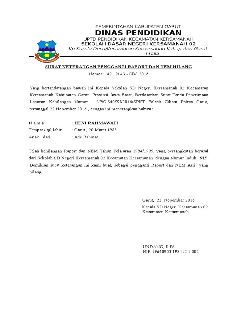 Contoh Surat Keterangan Kehilangan Ijazah Smp Backup Gambar