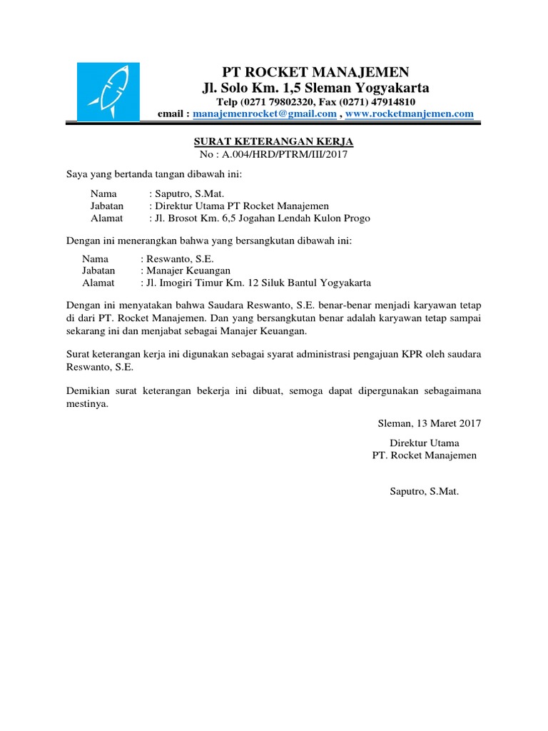 Demikian contoh surat keterangan kerja sebagai karyawan tetap ini dibuat semoga bisa menjadi referensi yang baik bagi anda yang membutuhkan. Contoh surat keterangan kerja sebuah surat keterangan kerja sangatlah dibutuhkan untuk memberikan penjelasan kepada seseorang instansi maupun perusahaan tempat bekerja agar dapat menerangkan memberikan penjelasan tentang suatu hal yang terkait misalnya kecakapan prilaku maupun lama pengabdian.