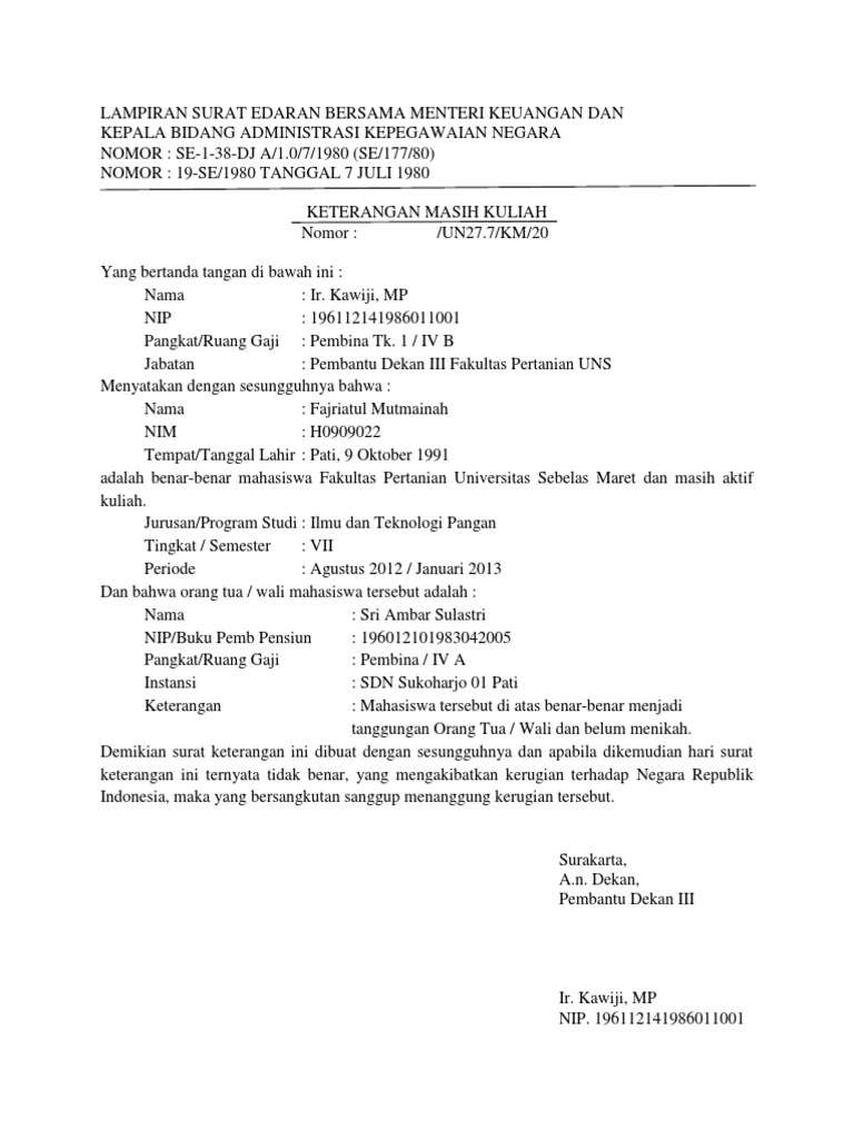 Contoh surat keterangan masih kuliah. Surat keterangan kuliah ini biasanya dikeluarkan oleh dekan fakultas. Surat keterangan aktif kuliah merupakan surat resmi yang dikeluarkan oleh pihak kampus untuk menerangkan bahwa seseorang secara resmi masih berstatus aktif menjadi mahasiswa dan melakukan kegiatan perkuliahan di kampus tersebut. Dekan fakultas psikologi dan ilmu sosial budaya. Namun ada beberapa perguruan tinggi yang mempunyai kebijakan bahwa yang. Contoh surat keterangan aktif kuliah mahasiswa kampus untuk syarat seleksi berikut ini adalah contoh tentang calon contoh surat keterangan aktif kuliah mahasiswa kampus untuk syarat seleksi calon. Sertifikat kuliah ini biasanya dikeluarkan oleh dekan fakultas.