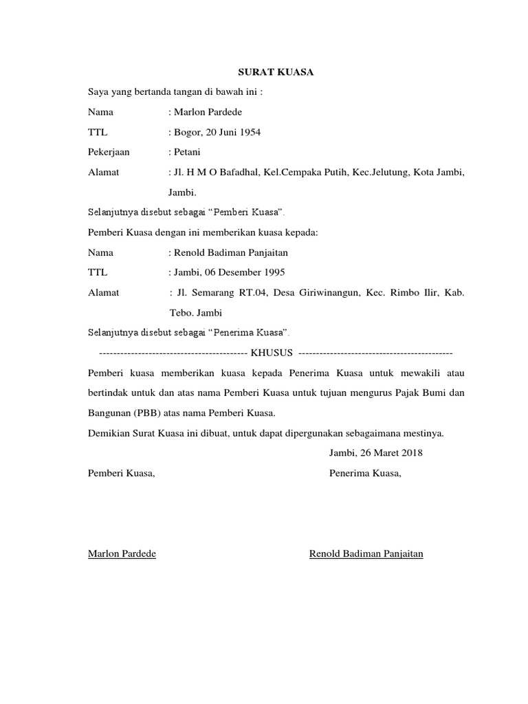Mohon maaf apabila terdapat kesamaan namatempatinformasi lain karena surat yang dibuat hanya bertujuan sebagai percontohan tanpa ada maksud apapun. 15 contoh surat kuasa tanah untuk berbagai keperluan setiap harta benda tentu memiliki harga tersendiri yang harus kita jaga. Diberi kuasa penuh untuk menjual atas sebidang tanah yang luasnya 200 m2 dengan nomor shm. Demikian beberapa contoh surat kuasa balik nama sertifikat tanah pada berbagai keperluan. Jika anda tidak memiliki kesempatan untuk merawat dan menjaga tanah tersebut maka anda bisa memberikan kuasa kepada orang lain. Contoh surat kuasa no.