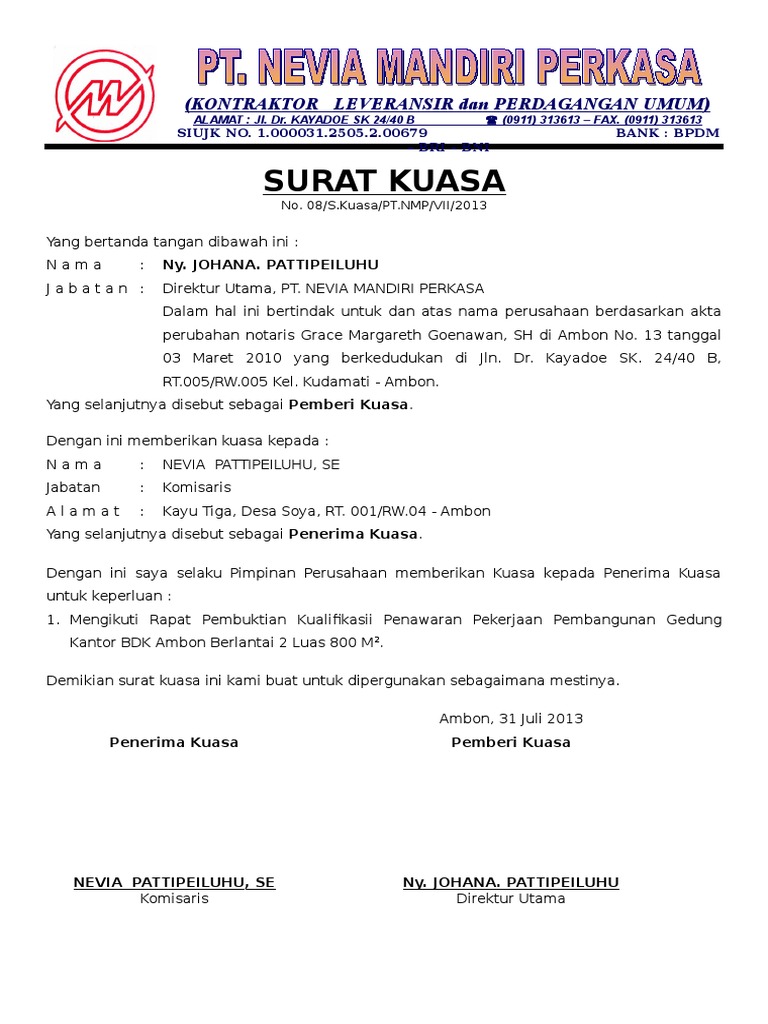 Contoh surat kuasa pekerjaan. Orang yang diberi kuasa tersebut akan menggantikan pemberi kuasa dalam berbagai tujuan maupun pekerjaan. Surat kuasa kedinasan adalah surat kuasa yang dibuat instansi perusahaan atau seorang pejabat pimpinan yang. Misalnya surat kuasa untuk perwakilan pengambilan ijazah pengambilan uang gaji pengambilan paspor pengambilan dokumen dokumen penting dan lain lain. Tulis nama lengkap sesuai ktp jabatan. Contoh surat kuasa surat kuasa menjadi sebuah solusi saat pemberi kuasa tidak bisa melakukan sebuah kegiatan maupun pekerjaan secara langsung tetapi tetap ingin melaksanakan pekerjaan tersebut dengan cara memberikan surat kuasa terhadap orang lain yang mewakili. 12 contoh surat kuasa pengambilan umum khusus beserta.