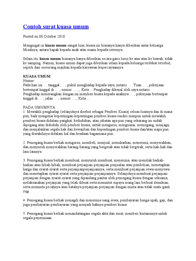 Contoh surat kuasa umum. Itulah mengenai beberapa contoh surat kuasa umum yang baik sebagai referensi dalam membuat surat kuasa umum yang baik dan benar. 02142018 02142018 hana home. Contoh surat kuasa khusus. Dengan membaca artikel ini kamu akan bisa membuat surat kuasamu sendiri untuk berbagai keperluan. Contoh surat kepengurusan pajak kepengurusan paspor kepengurusan stnk kuasa kepengurusan kuasa umum surat kuasa. Semoga dapat bermanfaat sekian dan terima kasih.