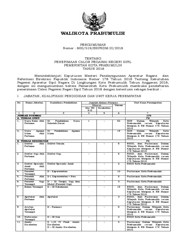 Musi rawas utara cpns 2018 kabupaten musi rawas utara kabupaten musi rawas utara adalah sebuah daerah otonomi baru dob di sumatera selatan yang merupakan pemekaran dari kabupaten indukn. 9507 orang umum. Saudara i agar mengajukan permohonan. Berita palembang kemenpppa buka 25 formasi cpns 2019 berikut contoh surat lamaran dan pernyataan kementerian pemberdayaan perempuan dan perlindungan anak membuka pendaftaran seleksi calon pegawai negeri sipil cpns 2019 untuk 25 formasi.