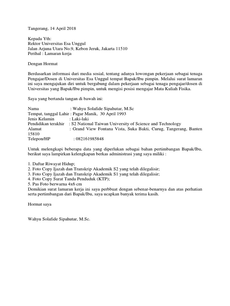 Download Contoh Surat Lamaran Kerja Lengkap Jeripurba Com