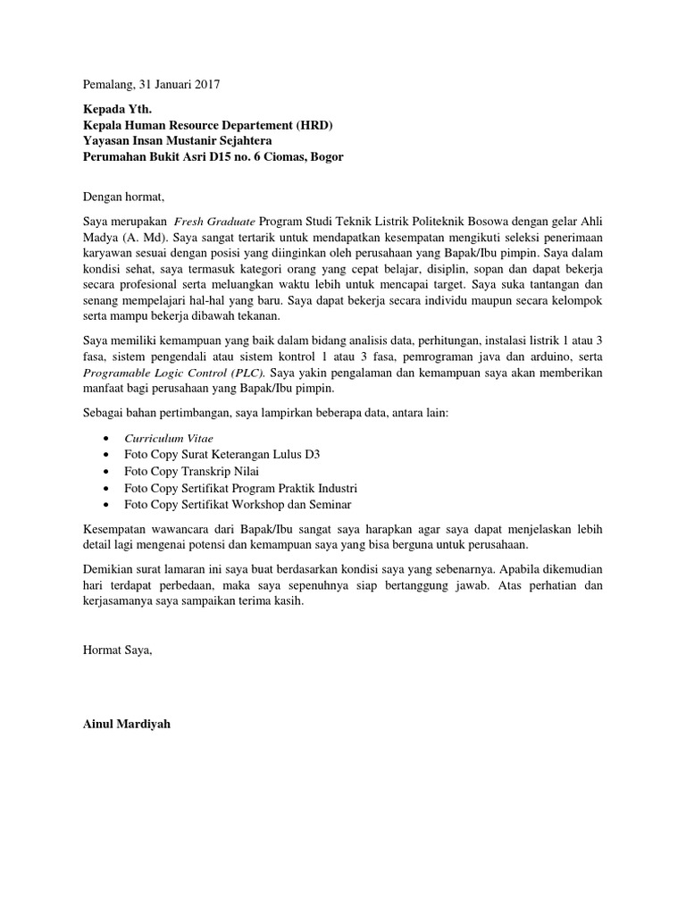 Thursday 06th august 2020 22 april2016. The collection that consisting of chosen picture and the best among others. Contoh surat lamaran kerja ini dibuat tentu saja untuk menjadi referensi bagi anda yang sedang mencari panduan untuk membuat surat lamaran kerja. Contoh surat lamaran kerja mekanik otomotif di bengkel motor bandung 29 april 2016. Dibawah ini akan di contohkan beberapa surat lamaran kerja bagi anda yang ingin melamar pekerjaan sebagai mekanik. Contoh surat lamaran kerja di dealer motor untuk berbagai posisi sebagai bahan referensi yang baik dan profesional diterima kerja.