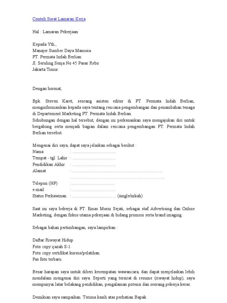 Contoh Surat Lamaran Kerja Yang Baik Dan Benar Terlengkap