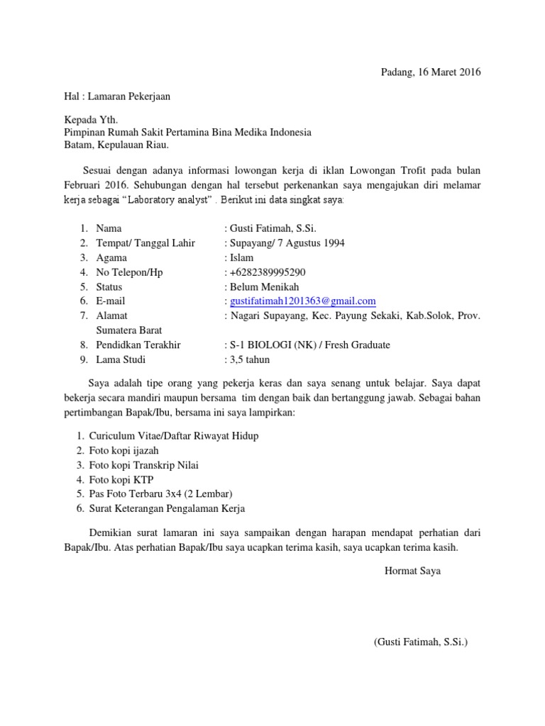 Ketapang banyuwangi jawa timur. Kepada yth pimpinan pertamina. Karena kebanyakan para pelamar kerja tidak. Bapakibu manager personalia ptspbu pertamina. Saat melamar pekerjaan dokument yang paling wajib di cantumkan iyalah surat lamaran pekerjaan. Surat lamaran kerja ini sangat dicari orang orang yang hendak melamar kerja di perusahaan pertamina.