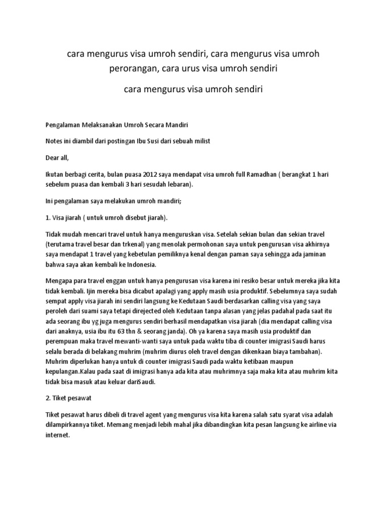 Contoh surat mahram umroh. Berikut kami lampirkan contoh pada poin 2 surat permohonan dari ybs untuk download dokument diatas klik link di bawah ini. Khusus artikel ini sesuai dengan judul post contoh surat permohonan izin ibadah umroh. Misalnya ada jamaah seorang wanita yang ingin melaksanakan haji atau umroh tanpa ada pendamping dari suaminya atau mahramnya kemudian di buatkan surat oleh travel umroh tersebut agar lolos dan bisa melaksakan haji dan umroh. Terkadang yang sangat menyedihkan ketika surat mahram tersebut di jadikan alat untuk menipu bagi suatu travel umroh. Sila nyatakan alasan yang berkaitan dengan umur dan tahap kesihatan. Contoh surat rayuan haji warga emas berikut ialah contoh surat rayuan haji untuk warga emas yang boleh pergi sendiri tanpa pengiring.