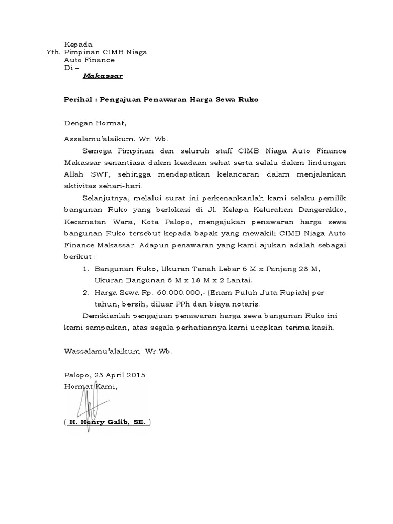 Perfect Contoh Surat Penawaran Ruko 29 Bagi Desain Surat