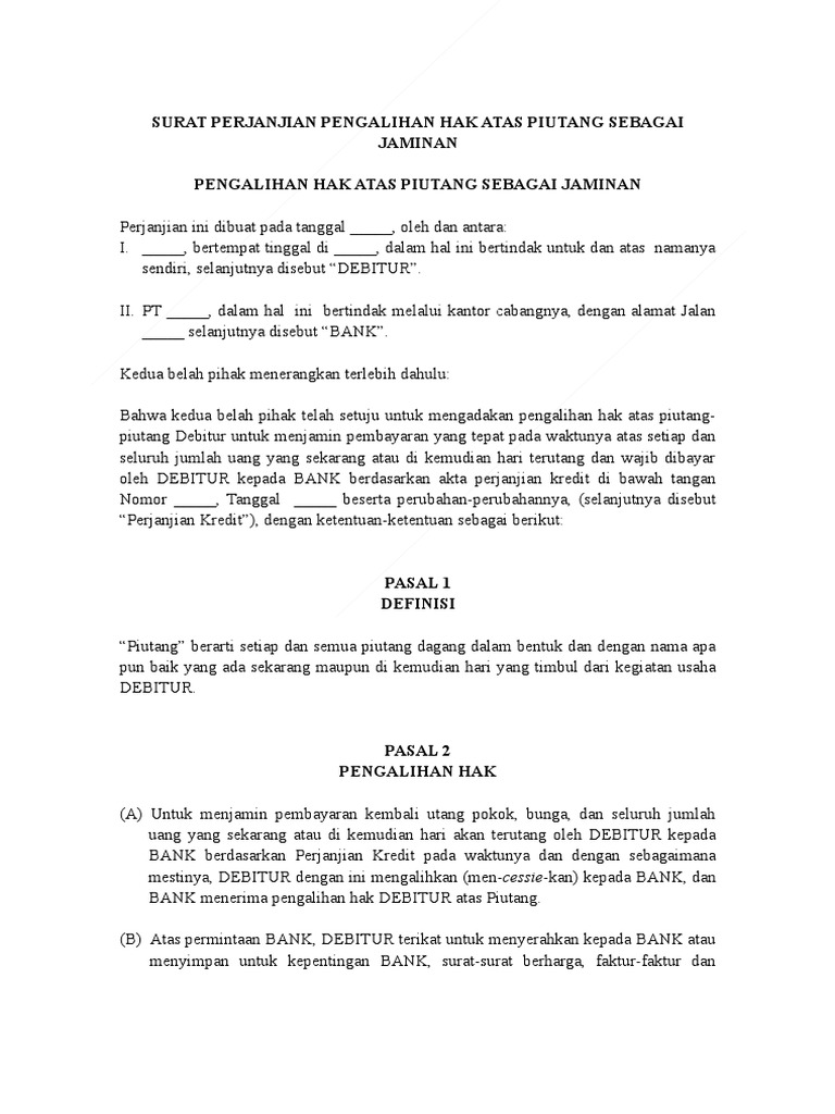 Contoh surat perjanjian pengalihan hutang contoh surat perjanjian pengalihan hutang hallo sahabat pada artikel yang anda baca kali ini dengan judul contoh surat perjanjian pengalihan hutang kami telah mempersiapkan artikel ini dengan baik untuk anda baca dan ambil informasi didalamnya. Namun agar lebih terstruktur dan memiliki bukti fisik maka kedua belah pihak biasanya akan menggunakan surat perjanjian. Mujiono lahir di bandung pada tanggal 17 agustus 1963 beralamat di jalan jl. Sudah seharusnya kita mengembalikannya tepat waktu sesuai dengan kesepakatan di awal perjanjian. Contoh surat kuasa penagihan hutang 2.