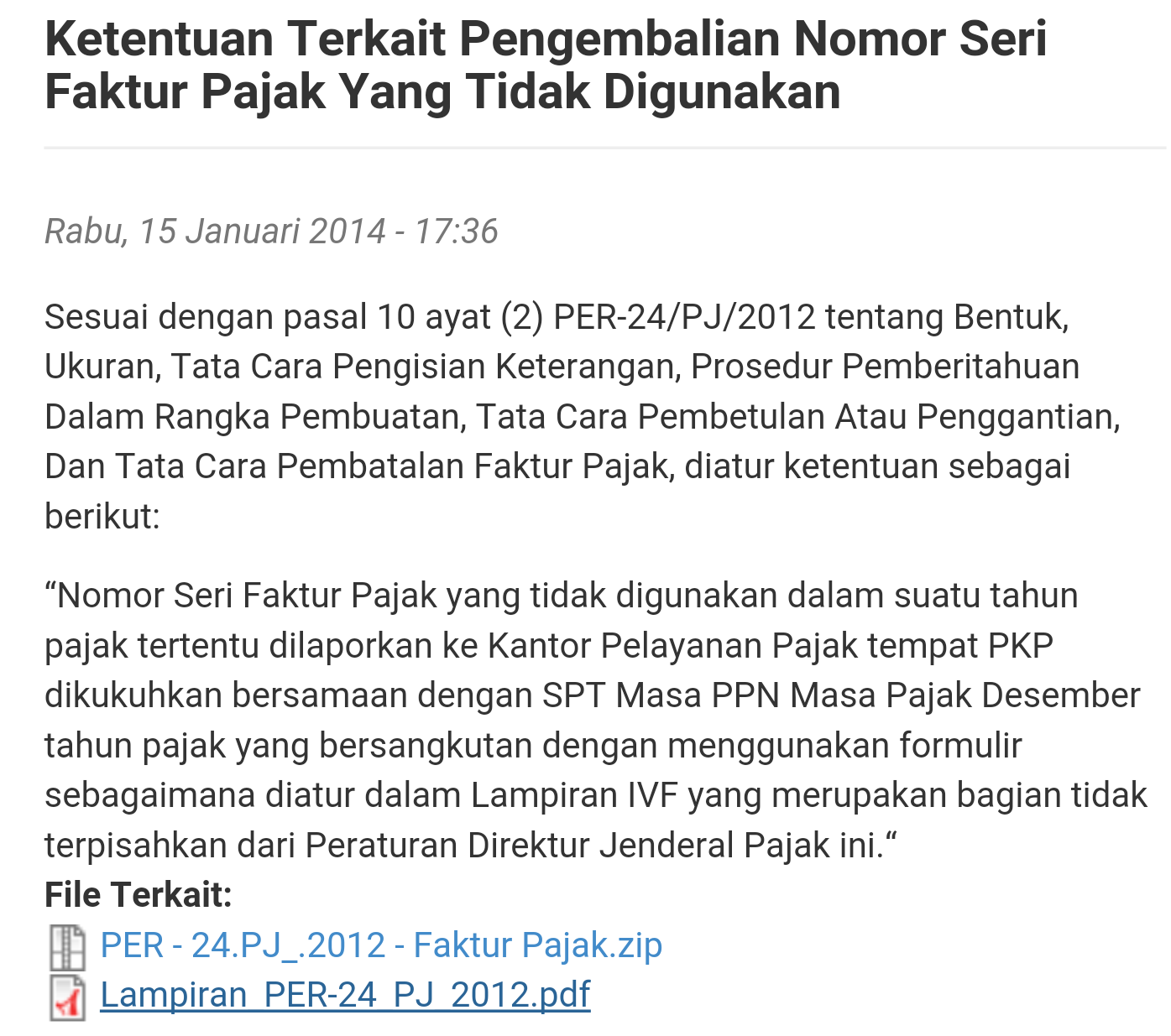 Contoh surat pengembalian nomor seri faktur pajak. Rekan cukup mengisi formulir pengembalian nomor seri faktur pajak secara lengkap. Formulir surat pemberitahuan nomor seri faktur pajak yang tidak digunakan sesuai lampiran ivf peraturan direktur jenderal pajak nomor per 24pj2012. Surat pengembalian nomor seri faktur pajak. Pemberitahuan ini kami sampaikan untuk memenuhi ketentuan peraturan direktur jendral pajak nomor per 24pj2012 nomor seri tersebut di atas belum pernah dipergunakan untuk menerbitka faktur pajak. Pengembalian nomor seri faktur pajak yang tidak terpakai hanya dapat dilakukan secara manual dengan menyerahkan formulir lampiran ivf per 24pj2012 ke loket di kpp. Bubuhkan tanda tangan wajib pajak atau penanggung jawab dan diberi cap perusahaan untuk wajib pajak badan.