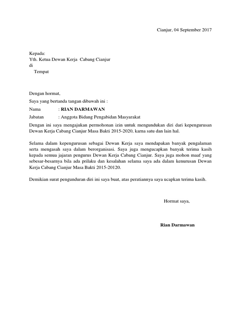 Surat Pengunduran Diri Organisasi Doc Guru Ilmu Sosial