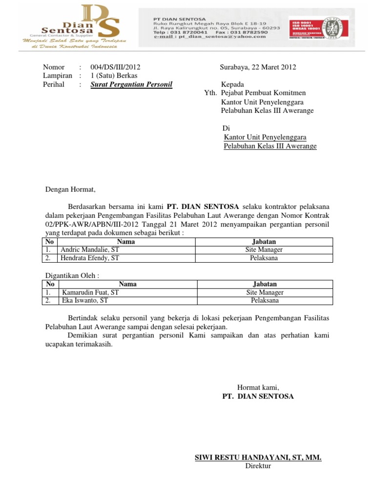Contoh surat pengusulan pergantian staf mild.