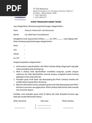Contoh surat izin garap tanah. Demikian contoh surat oper alih tanah garapan ini dibuat semoga bisa menjadi referensi yang baik bagi anda yang membutuhkan. Jika ya pasti anda membutuhkan surat perjanjian jika ingin menggadaikan tanah tersebut. Click to share on telegram opens in new window. Berikut dibawah ini contoh surat perjanjian garap antara pemilik lahan dengan yang menggarap contoh surat perjanjian garap surat pe. Contoh surat perjanjian penggunaan lahan tanah 2015 2212 surat perjanjian surat perjanjian penggunaan lahan tanah 2015 surat perjanjian adalah sebuah surat kesepakatan mengenai hak dan kewajiban masing ma.