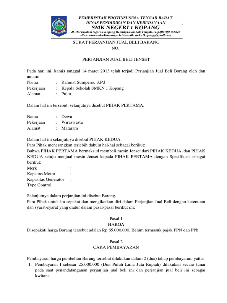 Contoh surat perjanjian jual beli barang doc. Sebaliknya pihak pembeli diwajibkan menyerahkan sejumlah uang sebesar harga barang kepada pihak penjual sesuai dengan kesepakatan kedua belah pihak. Jual beli merupakan transaksi yang sangat lumrah terjadi. Jika nilainya kecil maka bukti bisa berupa kwitansi atau strukt pembelanjaan. Contoh surat perjanjian jual beli. Bukti transaksi dibuat berdasarkan nilai dari barang yang diperjualbelikan. Untuk barang barang lain seperti kendaraan mobil rumah atau ruko silahkan ganti barang yang dimaksud didalam surat perjanjian.