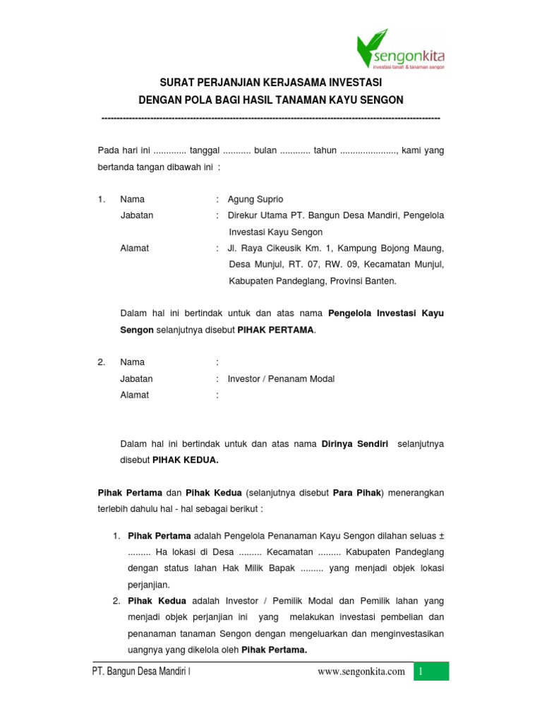 Sebaiknya surat perjanjian kerjasama dibuat di atas kertas yang memiliki kop perusahaan pihak pertama materai dibuat pada tanda tangan pihak pertama. Surat perjanjian kerjasama pembelian kayu jabon pada tanggal juli 19 2012 dapatkan link. Sekiranya berminat untuk melakukan survey dan kerjasama bisa menghubungi saya rifky di 085624456640. Pasal pasal itu tidak memiliki batasan pada segi jumlah. Manfaat dari adanya surat perjanjian jual beli ini misalnya. Hal ini bertujuan untuk mencegah hal hal yang tidak diinginkan menghindari sengketa dan mengikat kedua belah pihak yaitu penjual dan pembeli untuk terikat dan bertanggung jawab atas proses jual beli.