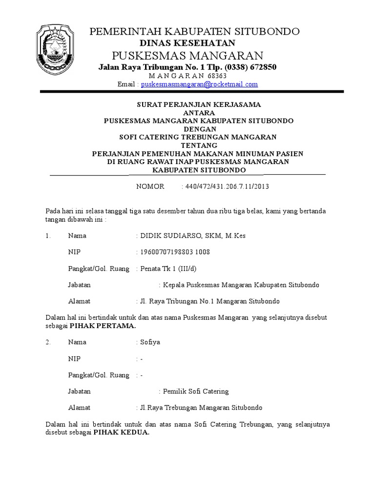 Contoh Surat Perjanjian Catering Gawe Cv Cuitan Dokter