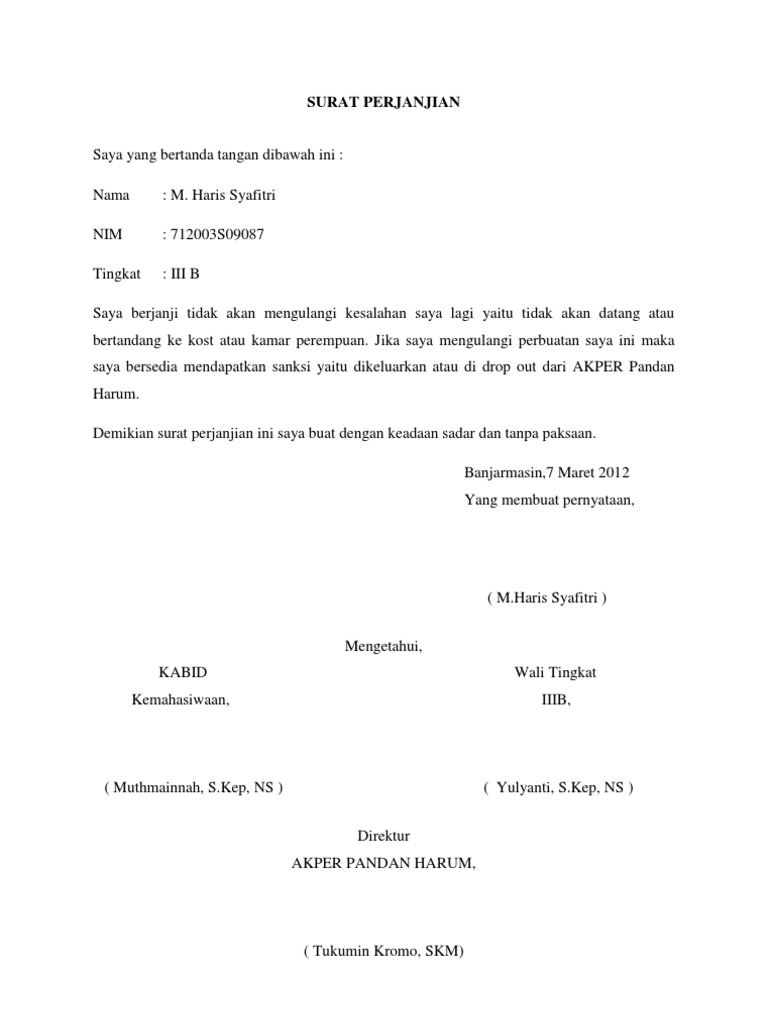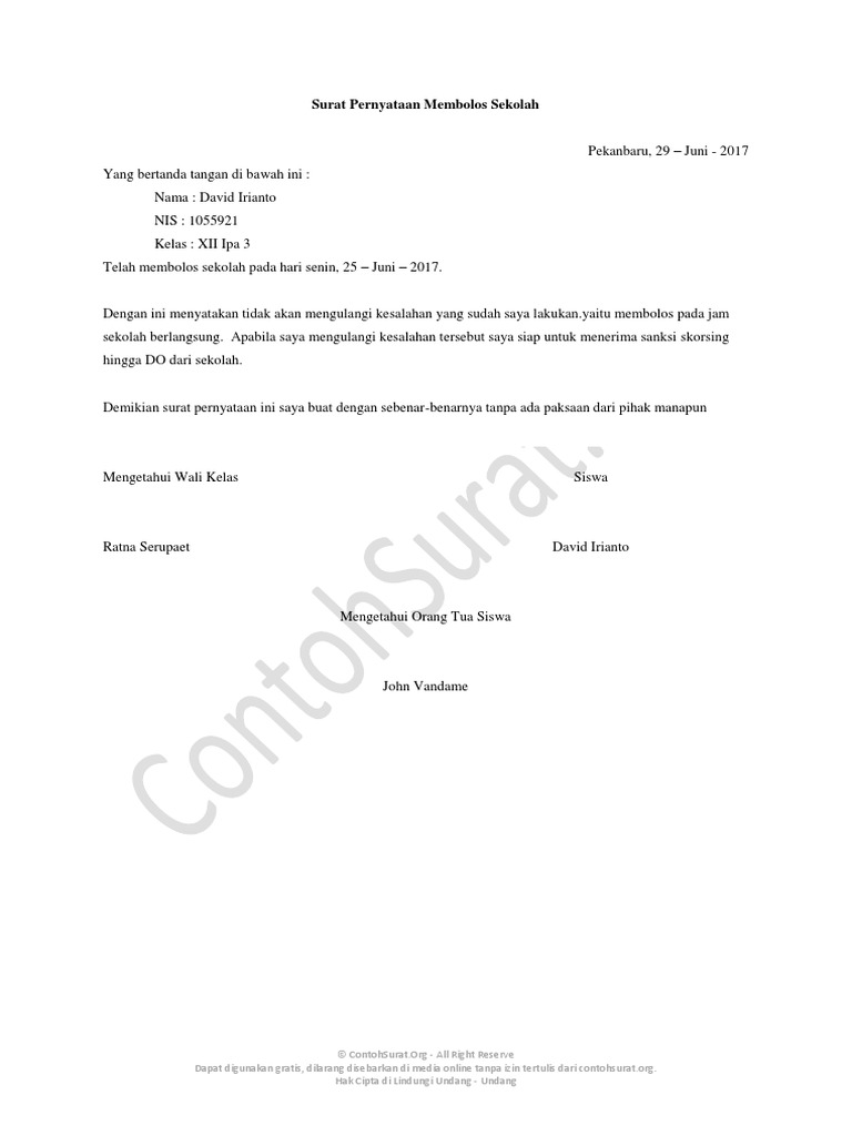 Contoh surat perjanjian tidak mengulangi kesalahan di sekolah. Pernyataan ini ditujukan secara langsung kepada siswa yang sudah melakukan bolos sekolah. Pada artikel ini akan dibahas tentang contoh surat pernyataan kesalahan. Contoh surat pernyataan kerja merupakan salah satu contoh surat yang sangat penting dan memiliki kekuatan hukum sama seperti jenis surat resmi lainnya. Contoh surat pernyataan siswa bolos sekolah. Apakah anda mencari contoh sura. Ketika siswa terdapat melakukan kesalahan maka bisa saja siswa tersebut akan diminta untuk menulis surat pernyataan sekolah dan pernyataan untuk tidak mengulangi kesalahan tersebut di kemudian hari.
