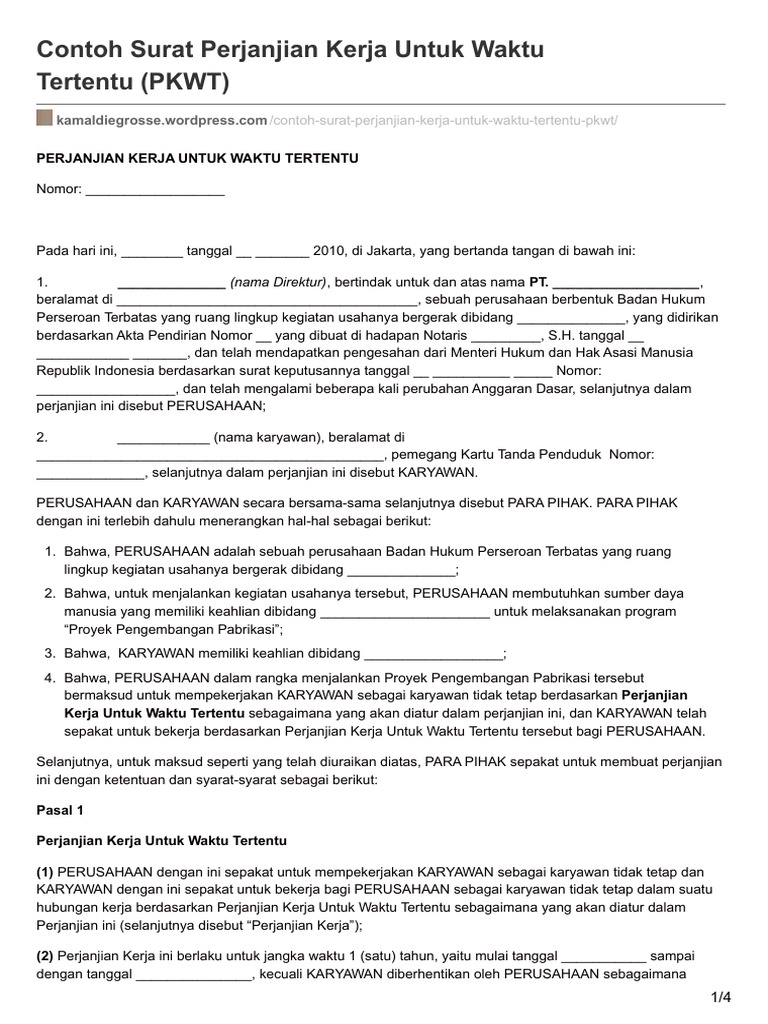 Bentuk Rancangan Kontrak