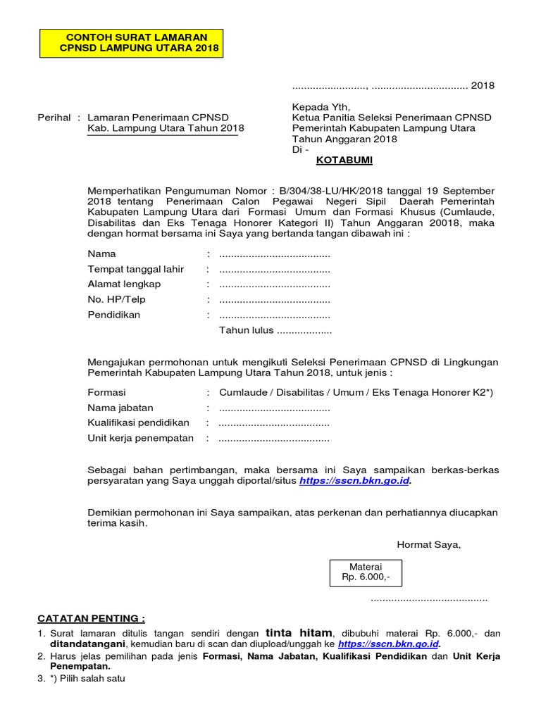 Contoh surat permohonan cpns. Ada banyak formasi yang dibuka dan tentunya menjadi peluang besar bagi anda yang ingin melamar kerja sebagai cpns. Contoh surat lamaran kerja cpns terbaru 2015 buat anda yang ingin melamar kerja di cpns maka membuat surat lamaran tidak boleh asal buat saja dan ada setruktur yang harus anda ketahui juga maka dengan ini kami blog contoh surat dan proposal memberikan info ini buat anda semua supaya anda bisa di terima lamaran kerja cpns anda nantinya. Cpns kemenkumham 2019 kemenkumham membuka lowongan cpns 2019 sebanyak 4598 formasi. Contoh surat permohonan kerja cpns have an image from the othercontoh surat permohonan kerja cpns it also will include a picture of a sort that may be observed in the gallery of contoh surat permohonan kerja cpns. Contoh surat lamaran cpns. Sahabat edukasi yang berbahagia dalam kesempatan mempersiapkan kelengkapan berkas dalam seleksi penerimaan cpns tahun 2019 berikut saya bagikan beberapa contoh format surat lamaranpermohonan menjadi cpns tahun 2019 pernyataan tidak pernah dihukum penjara dan surat pernyataan tidak pindah tugas dari kabupatenkota yang sekiranya akan dapat memantapkan kualitas data dan perlengkapan.
