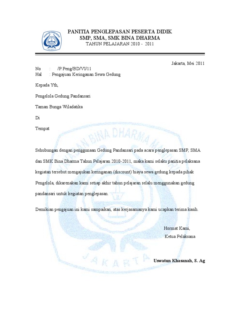 Walaupun sekarang ini sudah banyak media komunikasi yang canggih namun perusahaan sendiri masih harus tetap menggunakan surat. Surat permohonan bantuan permohonan bantuan dana permohonan bantuan pinjaman permohonan kenaikan gaji permohonan kerja sama dll hingga contoh surat pengajuan ini bisa anda gunakan ketika dibutuhkan untuk izin atau suatu permintaan bantuan dalam bentuk jasa dana pengamanan dan pertimbangan dari pemohon. Untuk memberikan informasi kepada pihak yang kita harapkan dengan surat pemberitahuan kita bermaksud memberikan pengetahuan atau informasi yang dapat tersampaikan sehingga mencapai tujuan yang diharapkansurat pemberitahuan bisa menggunakan kop surat perusahaan ataupun tidak menggunakankop surat tergantung kebutuhan apakah pemberitahuan tersebut diberikan secara resmioleh jabatan atas. 15 contoh surat permintaan barang yang benar dan terlengkap dalam menjalankan roda perusahaan tentu tidak bisa terlepas dari urusan surat menyurat. Berbagai perusahaan instansi lembaga maupun organisasi menggunakan surat resmi sebagai alat komunikasi mereka. Doc surat permohonan diskon harga cibubur vivian contoh surat permohonan penurunan harga surat permohonan diskon harga cibubur vivian n arum download with google download with facebook or download with email surat permohonan diskon harga cibubur download surat permohonan diskon harga cibubur vivian n arum kop surat bem nomor depok 23 oktober 2019 lampiran 1 satu lembar perihal permohonan.