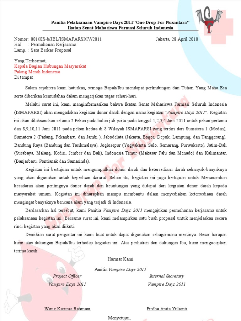 Contoh surat permohonan donor darah ke pmi doc. Permohonan pelaksanaan donor darah lampiran. The file extension pdf and ranks to the documents category. Sehubungan dengan rencana kegiatan tersebut kami selaku panitia memohon bantuan tenaga medis secukupnya dari markas pmi provinsi sulawesi tengah untuk melaksanakanpengambilan darah dari para pendonor. Use the download button below or simple online reader. Admin blog contoh seputar surat 2019 juga mengumpulkan gambar gambar lainnya terkait contoh surat permohonan donor darah ke pmi doc dibawah ini. Itulah yang dapat kami bagikan terkait surat permohonan donor darah ke pmi.