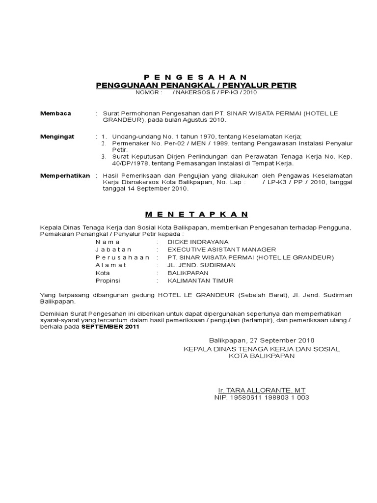 15 contoh surat pengajuan permohonan izin bantuan dan kerjasama seiring dengan perkembangan zaman dan kemajuan teknologi yang semakin canggih penggunaan surat sebagai media komunikasi pun memang semakin menipis. Sertifikasi penyalur petir ijin disnaker penangkal petir. Izin ke dinas pemadam ke bakaran. Penangkap petir viking v6 r 132 m. Sertifikasi disnaker petir diperuntukkan bagi instalasi penyalur petir yang baru di pasang jadi apabila ada sebuah instalasi penangkal petir selesai dipasang maka kelayakan dari instalasi haruslah di uji oleh lembaga pemerintahan disnaker atau pihak ke tiga yang terakreditasi apabila sudah sesuai dengan standart yang berlaku maka dari dinas tenaga kerja akan mengeluarkan surat hasil. Pemohon mendaftarkan izin ke front office kemudian dilakukan verifikasi isian permohonan izin dan kelengkapan berkas kepala seksi melakukan.