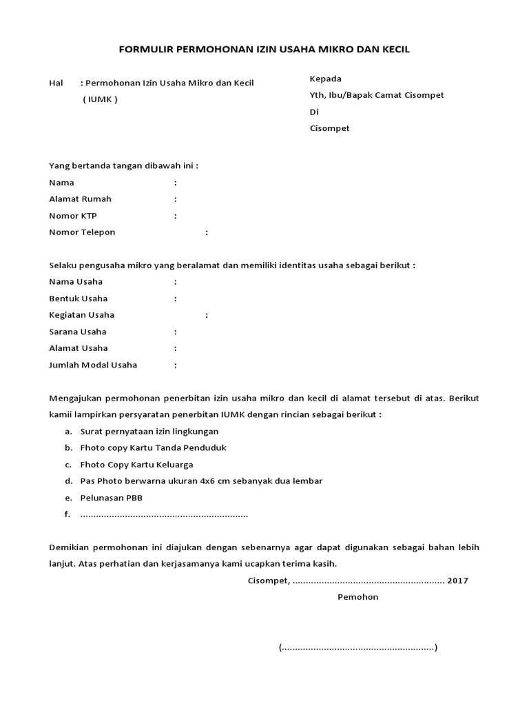 Contoh surat permohonan dalam kehidupan sehari hari sering kali kita dihadapkan dengan suatu situasi yang tidak dapat dikerjakan dengan sendiri dan harus memerlukan bantuan pertolongan dari orang lainagar permohonan tersebut dikabulkan maka kita harus membuat sebuah surat permohonan yang ditujukan kepada pihak yang bersangkutan. Format gambar contoh surat perizinan usaha yang benar 2019. Permohonan izin tempat usaha situ kepada yth walikota bandar lampung. Untuk itu mereka harus membuat mengajukan permohonan izin usaha dan surat izin tempat usaha atau surat izin usaha perdagangan. Bahkan tak jarang usaha perdagangan mereka meningkat pesat. Yang akan menjadi materi pembahasan kita kali ini adalah mengenai contoh surat keterangan usaha sku.
