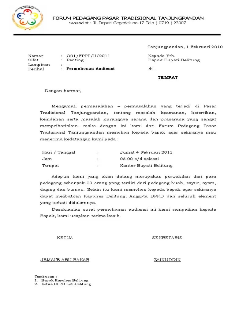 Contoh surat audiensi ke walikota dari organisasi intra kampus dalam surat audiensi dari organisasi mahasiswa jika dilayangkan ke luar kampus maka biasanya harus ada tanda tangan dekan atau rektorat sebagai pertanggungjawaban. 3 contoh surat lamaran kerja di mcdonald profesional.