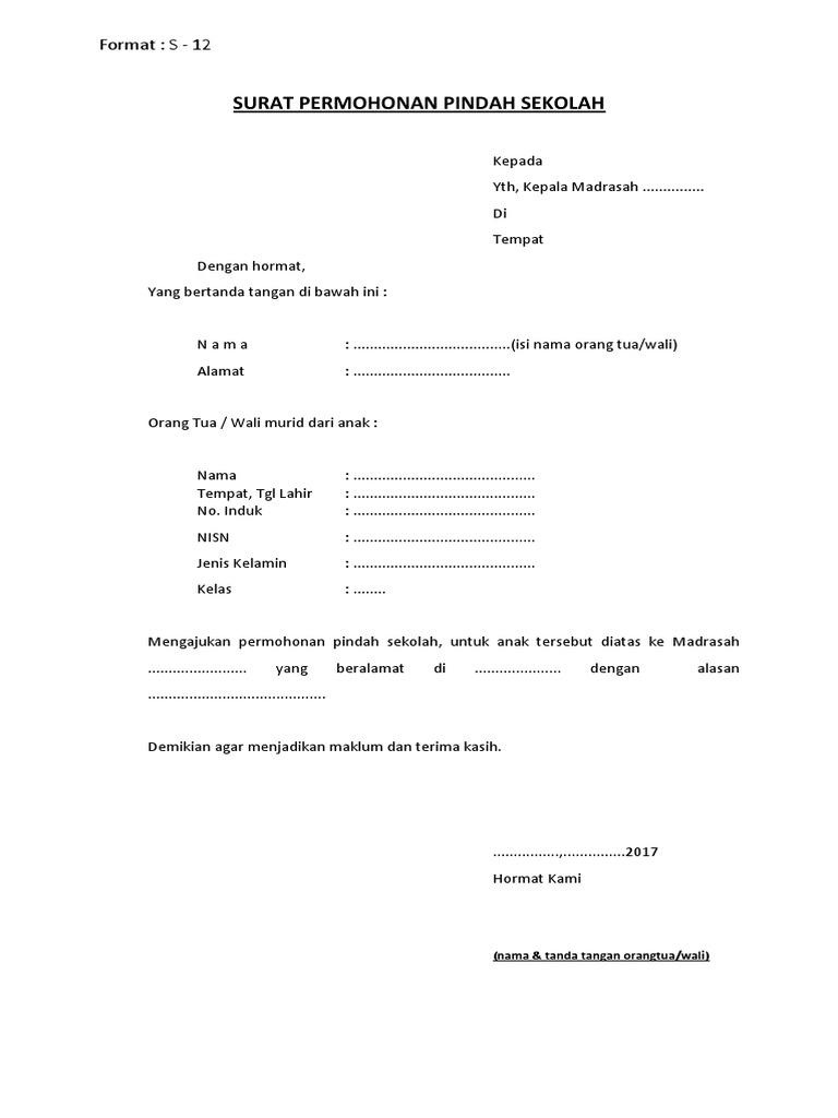 Sehingga bisa jadi banyak beredar format surat yang bisa saja agak berbeda antar satu daerah dengan daerah lainnya. Contoh surat permohonan pindah sekolah doc. Untuk itu anda pun bisa download contoh surat permohonan pindah sekolah dari orang tua murid doc di bawah ini. Inilah pembahasan lengkap terkait surat permohonan pindah sekolah dari orang tua. Mengonsep permohonan tentu akan lebih mudah jika menggunakan aplikasi microsoft word. Surat permohonan pindah dari orangtua memang tidak ada ketentuan baku tentang format contoh surat keterangan pindah sekolah.