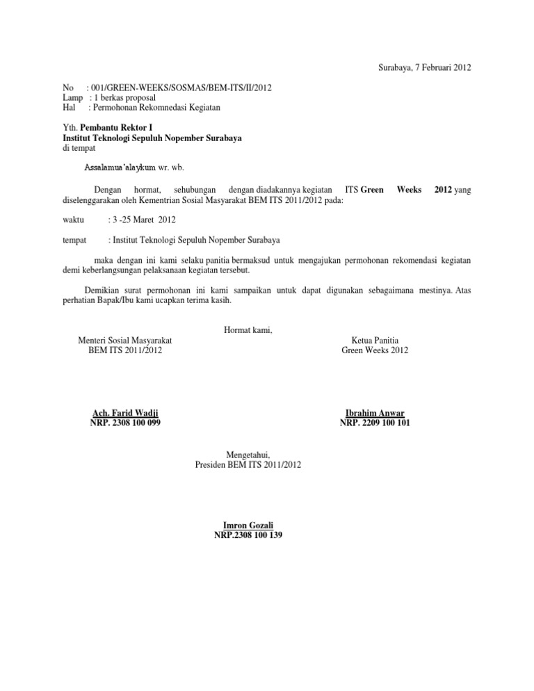Proposal peringatan hari ulang tahun desa. Contoh surat pengantar proposal yang resmi. Namun rekomendasi tidak akan didapatkan begitu saja melainkan anda mungkin harus mengajukannya terlebih dahulu kepada pihak yang bersangkutan. Home surat permohonan 90 contoh surat permohonan rekomendasi kegiatan resmi 90 contoh surat permohonan rekomendasi kegiatan resmi seperti halnya surat permohonan yang lainnya surat permohonan rekomendasi kegiatan juga digunakan untuk membuat permohonan dalam bentuk tertulis kepada suatu instansi atau perusahaan agar dapat merekomendasikan acara kegiatan yang akan kita adakan. Contoh surat permohonan bantuan dana phbi pembangunan bencana ke perusahaan surat izin surat permohonan kerjasama proposal pengajuan dana rekomendasi maaf izin kuliah kerja perusahaan dan sebagainya surat resmi. Kop surat nomor.