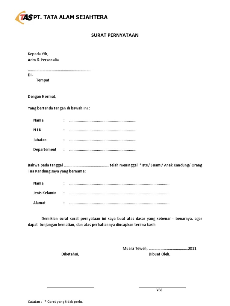 Ditujukan buat rekan rekan yang mebutuhkan rujukan dalam membuat surat pernyataan maupun surat pernyataan kesanggupan dengan format yang baik dan benar. Dalam arti lain surat ini diartikan sebagai pernyataan secara tertulis tentang kesanggupankesediaan seseorang atau kelompok untuk menjalankan sesuatu yang telah disepakati dalam surat itu. Surat kronologis kematian alm. Karena kani sudah menyiapkan beberapa contoh surat keterangan kematian di bawah ini. Contoh surat kematian download contoh surat kematian doc. Contoh surat keterangan kematian 2 adalah surat keterangan kematian yang diterbitkan oleh dinas kependudukan dan catatas sipil disdukcapil yang biasa digunakan untuk mengajukan pencairan dana asuransi jiwa pembagian hak waris dl.
