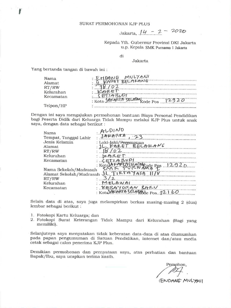Surat pernyataan ketaatan penggunaan kjp plus contoh pengisisan surat pernyataan ketaatan dalam rangka penggunaan kjp plus tahun 2019 maka yang bertanda tangan di bawah ini menerangkan bahwa abdu thohir smp dwi cakti bhakti palad a liliisa puspita bekasi timørvn015 rt. Kita akan menjelaskan lagi tentang contoh surat yang lain pada kesempatan yang akan datang.