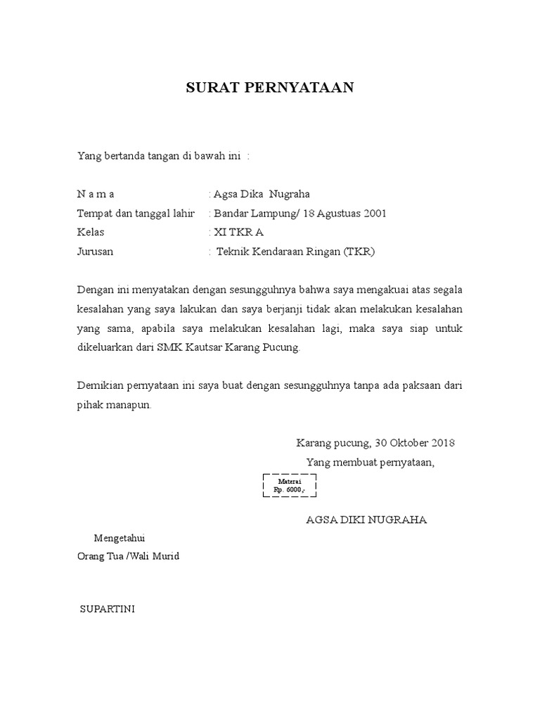 Dimanapun kita berada tentu ada peraturan dan norma norma yang harus dipatuhi. Karena itu dibutuhkan suatu surat perjanjian yang mengikat oleh pihak yang bersalah maupun pihak yang teraniaya. Atas perhatian dan kebijaksanaannya saya ucapkan terima kasih. Contoh surat pernyataan kesalahan surat pernyataan merupakan salah satu surat penting untuk melakukan menyatakan kondisi seseorang atau pembuat surat. Apakah anda mencari contoh sura. Atau mungkin memerlukan suatu rekomendasi terlampir dari pihak tertentu juga perlu surat pernyataan.
